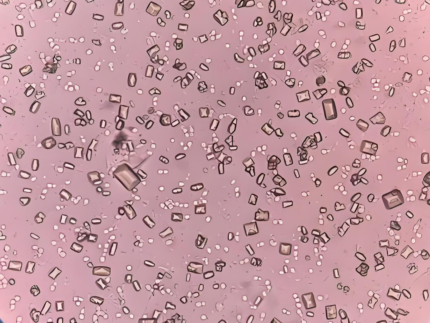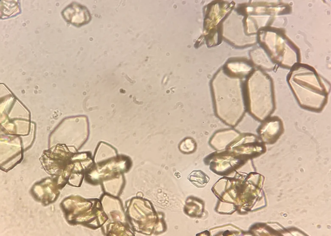 外觀:常呈黃色或紅棕色,質地相對較軟。顯微鏡下,尿酸晶體可呈多種形態,典型的有菱形或花瓣狀,在偏振光下呈現明亮的顏色。