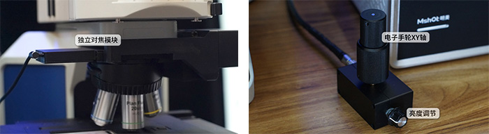 數字切片掃描系統會將顯微鏡普通載物臺升級為高精度電動載物臺,用戶可用電子手輪實現XY軸運動控制和亮度控制,完整保留顯微鏡功能。