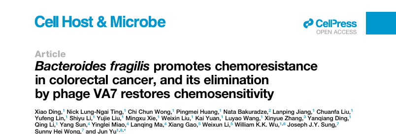 文獻分享│結直腸癌化療耐藥新線索:脆弱擬桿菌的作用及噬菌體 VA7 的逆轉潛力