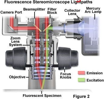 最近,研究者已經可以在配有高數值孔徑物鏡的顯微鏡上搭配熒光觀察方法。隨著生物特異性的熒光蛋白(如綠色熒光蛋白,GFP)的出現,熒光觀察也開始出現在體視鏡上。